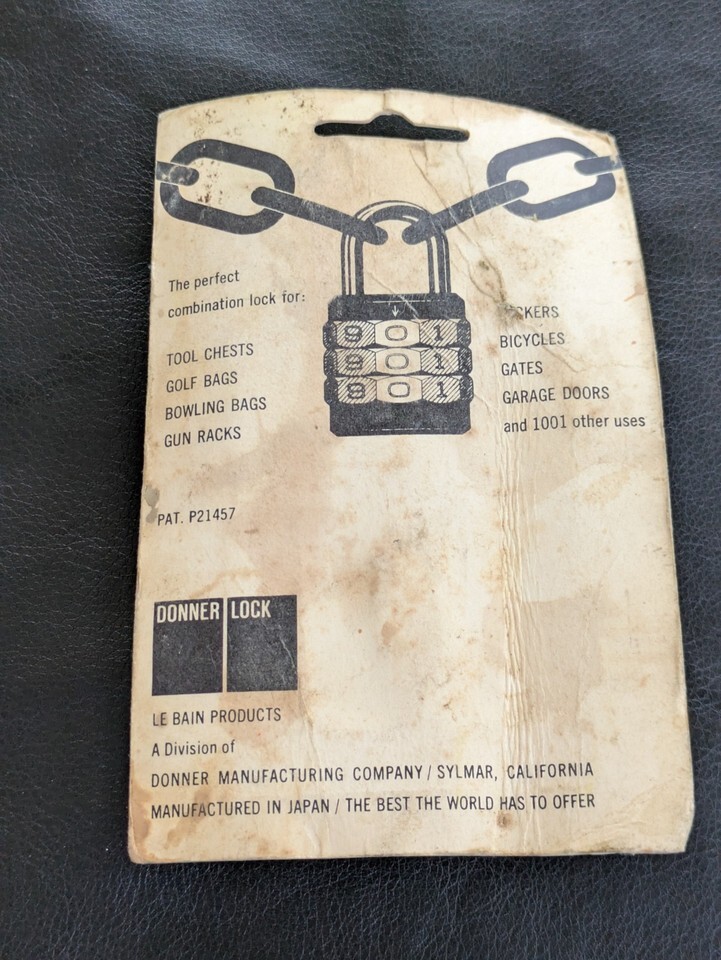1950s Donner Barrel Lock C-30 Sylmar Calif 3 Digits Japan Jumpsuit New- show ...