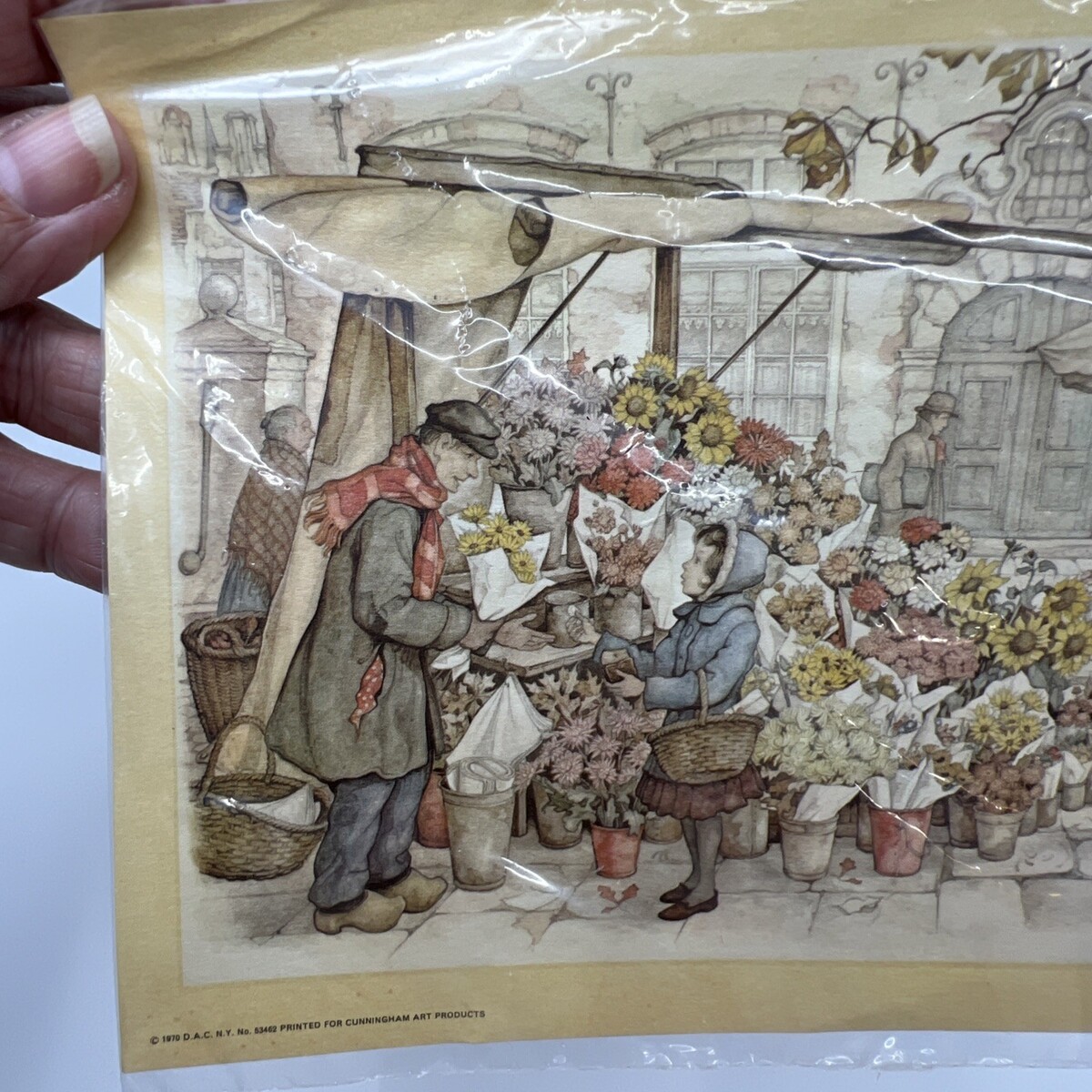 1970 Donald Art Printed in Holland Anton Pieck Print 5x7 Dog Girl Wagon NOSIP
