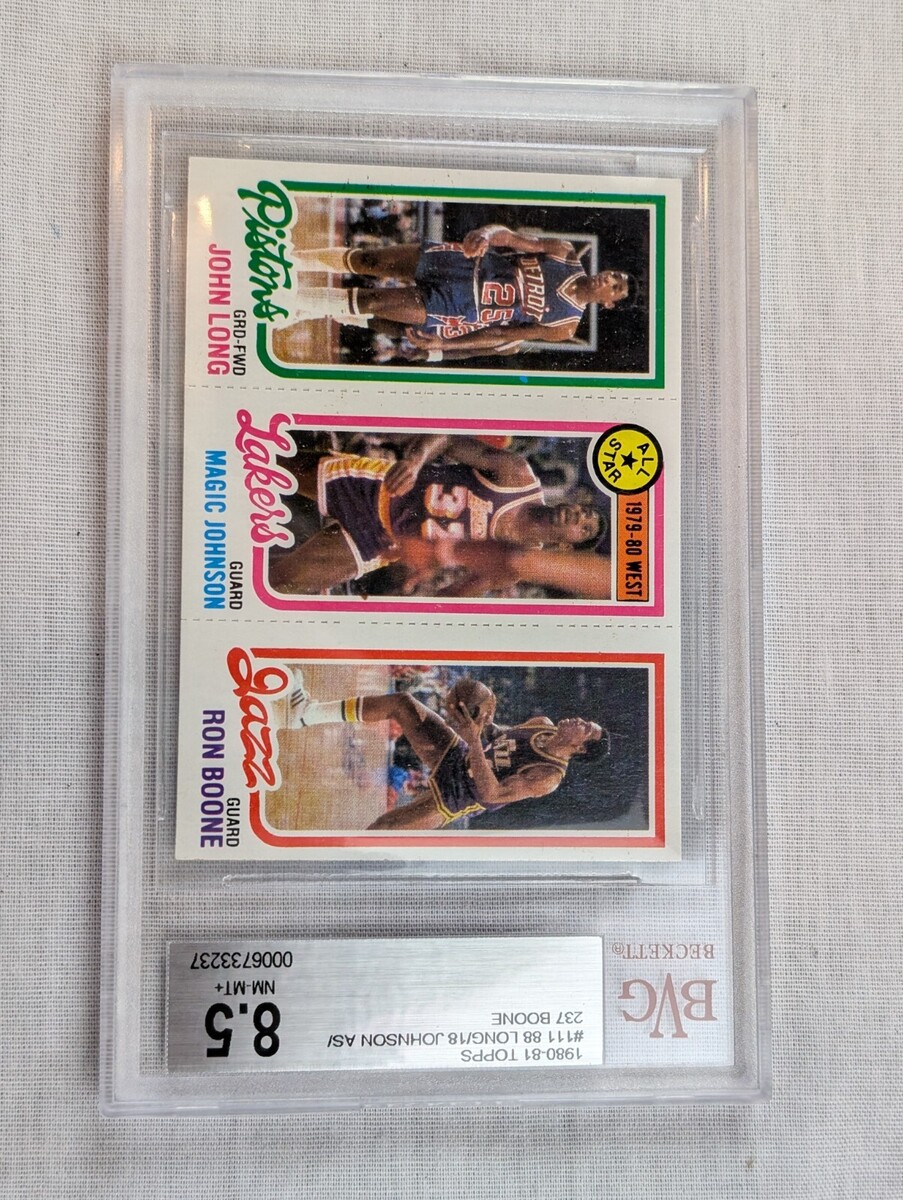 Up for sale is a 1980-81 Topps Magic Johnson RC, Ron Boone, John Long #111 BVG 8.5 Nm-Mt+