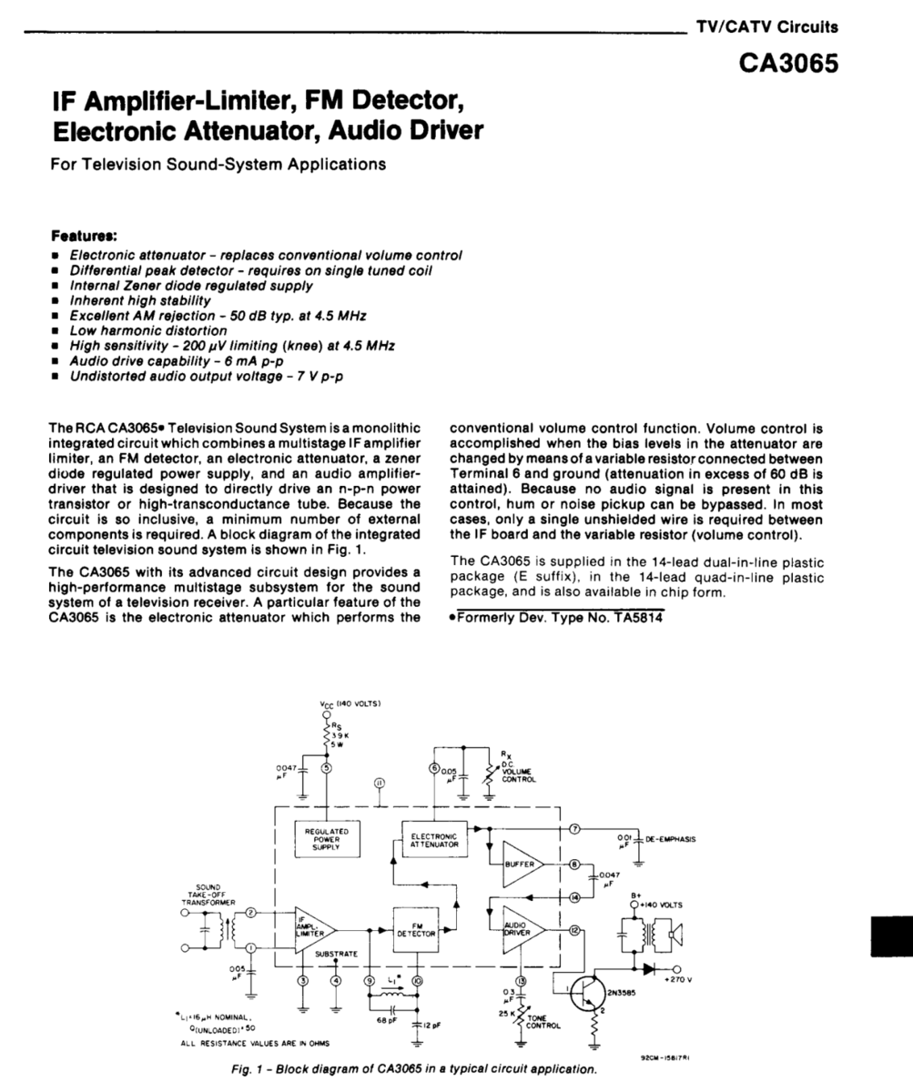 Primary image for 1X CA3065 RCA TV Sound IF Amplifier Limiter FM Detector Audio Driver DIP-14