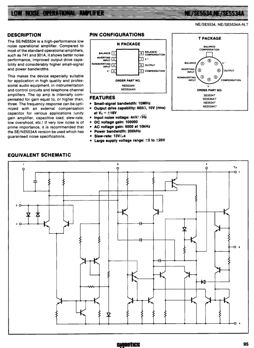 1 Piece - NE5534AN Signetics Low Noise Operational Amplifier IC 10MHz 13Vus DIP-8