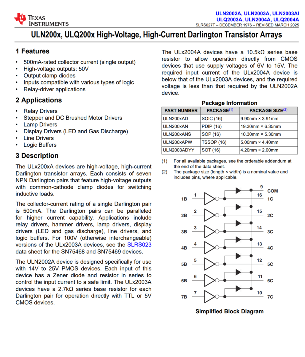 Store Seller Profile Feedbacks Contact Semiconductors Transistors Transistor Arrays close 1X ULN2002AN Texas Instruments 50V 500mA 7 Channel Darlington Transistor Array DIP-16 Ready to Ship Ask a Question 30-Day Return Description Specifications Shipping Returns Disclaimer 1 Piece - ULN2002AN Texas Instruments 50V 500mA 7 Channel Darlington Transistor Array DIP-16 Specification Output Characteristics OPEN-COLLECTOR Driver Number of Bits 7 Output Peak Current Limit-Nom 500 mA Turn-off Time 1000 ns Turn-on Time 1000 ns Interface IC Type BUFFER OR INVERTER BASED PERIPHERAL DRIVER Technology BIPOLAR Built-in Protections TRANSIENT Number of Functions 1 Output Current Flow Direction SINK Output Current-Max 500 mA Surface Mount YES Operating Temperature-Max 70 C Operating Temperature-Min -20 C Number of Terminals 16 Package Body Material PLASTIC/EPOXY Package Code DIP Package Equivalence Code DIP16,.3 Package Shape RECTANGULAR Terminal Finish Nickel/Palladium/Gold (Ni/Pd/Au) Terminal Form THROUGH-HOLE Terminal Pitch 2.54 mm Terminal Position DUAL Length 19.305 mm Seated Height-Max 5.08 mm Width 7.62 mm Package Description DIP, DIP16,.3 Pin Count 16 Note: This table may not be entirely accurate and should only be used as a general reference. Shipping Policy Our go-to options for small to medium items are USPS Ground Advantage and USPS Priority Mail, known for their reliable tracking and peace of mind. Smaller items might qualify for USPS First Class Mail. Contact us to discuss. Note: This method is less recommended due to the potential for delays. Return Policy We offer a 30-day return window, no questions asked. Providing a reason helps us improve. Combined Shipping Purchasing multiple listings? We?ll automatically combine them and refund any excess postage? everything above the actual label cost plus $0?$1.5 packing cost for large orders. After checkout, send us a quick message as a reminder. Or add all items to your cart and click ?Request total?. If that button is missing (common with promotions or volume pricing), just pay normally; we?ll handle the refund during fulfilment. Sofitrek Product Disclaimer 1. Nature of Goods All products offered by Sofitrek are surplus items. These products may originate from older batches, series, or have earlier date codes than those currently supplied by the original manufacturers or their authorized dealers. 2. Non-Affiliation Sofitrek operates independently and is not an authorized distributor, nor is it affiliated or associated with the manufacturers of the products sold. Sofitrek does not represent manufacturers in any capacity. 3. Exclusion of Manufacturer?s Warranty Because Sofitrek is not an authorized distributor, all original manufacturer warranties?express or implied?are excluded, including any implied warranties of merchantability, fitness for a particular purpose, or non-infringement. 4. Firmware Software Some products may include pre-installed firmware or software. Sofitrek does not guarantee the presence, compatibility, revision level, or suitability of such firmware or software for your application. You are solely responsible for obtaining, installing, and licensing any firmware or software from lawful sources. 5. Export Controls Sanctions Compliance The buyer is solely responsible for complying with all applicable U.S. and international export-control, sanctions, and embargo regulations (including EAR, ITAR, OFAC, and EU dual-use rules). Products may not be exported, re-exported, or transferred contrary to law. Buyer agrees to indemnify and hold harmless Sofitrek from any penalties, liabilities, or losses arising out of non-compliance. 6. Customs, Duties, Taxes Import Regulations For international shipments, title and risk of loss transfer to the buyer when the goods are handed to the carrier. The buyer is responsible for all customs clearance procedures, brokerage fees, import duties, VAT/GST, environmental fees, and ensuring compliance with local labeling, packaging, safety, and regulatory requirements (e.g., CE, UKCA, RoHS, REACH, WEEE, UL, CSA). Sofitrek assumes no liability for delays, seizures, fines, or additional costs arising from customs or regulatory matters. 7. No Critical-Application Use Products sold by Sofitrek are not authorized for use in life-support, implanted medical devices, aerospace flight controls, nuclear facilities, weapons systems, or any application where failure could reasonably be expected to result in personal injury, loss of life, or catastrophic property damage. Buyer assumes all risk and indemnifies Sofitrek for any claims arising from such use. 8. Limitation of Liability Sofitrek shall not be liable for any direct, indirect, incidental, consequential, special, or exemplary damages?including lost profits, business interruption, or loss of data?arising out of the purchase or use of any product. In no event shall Sofitrek?s cumulative liability exceed the purchase price paid for the specific product giving rise to the claim. 9. Force Majeure Sofitrek shall not be liable for any delay or failure to perform due to events beyond its reasonable control, including natural disasters, war, terrorism, labor disputes, supply-chain interruptions, pandemics, or governmental actions. 10. Compliance with End-User Agreements The buyer is solely responsible for complying with all terms of any End-User License Agreement (EULA) or similar documentation that may accompany or relate to the products. 11. Governing Law Jurisdiction This disclaimer and any sale by Sofitrek are governed by the laws of the State of California, U.S.A., without regard to conflict-of-laws rules. Any dispute shall be resolved exclusively in the state or federal courts located in Orange County, California, and buyer consents to personal jurisdiction there. 12. Severability If any provision of this disclaimer is found invalid or unenforceable, the remaining provisions shall remain in full force and effect. By purchasing from Sofitrek, the buyer acknowledges
