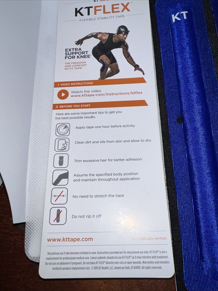 - 2 Pair TAPE KTFlex Flex Reinforced Adhesive Strips OUTER Knee Blue 2" x 10"