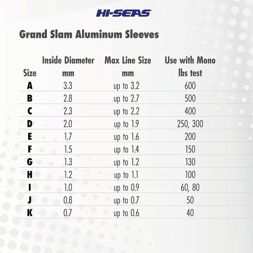 HI-SEAS Grand Slam Aluminum Fishing Line Crimp Sleeves - Retail Pack, Durable and Strong Crimps for Monofilament 40lb Test up to 600lb Test for Saltwater...