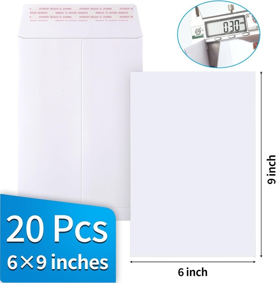 ?20 Pcs 69 White Envelopes?You will receive 20pcs mailing envelopes, sufficient quantity to meet your use and replacement needs. The size of the manila envelopes is 6x9 inches, suitable for mailing important papers, business documents, booklets, catalogs, brochures or storing magazines, books and more.