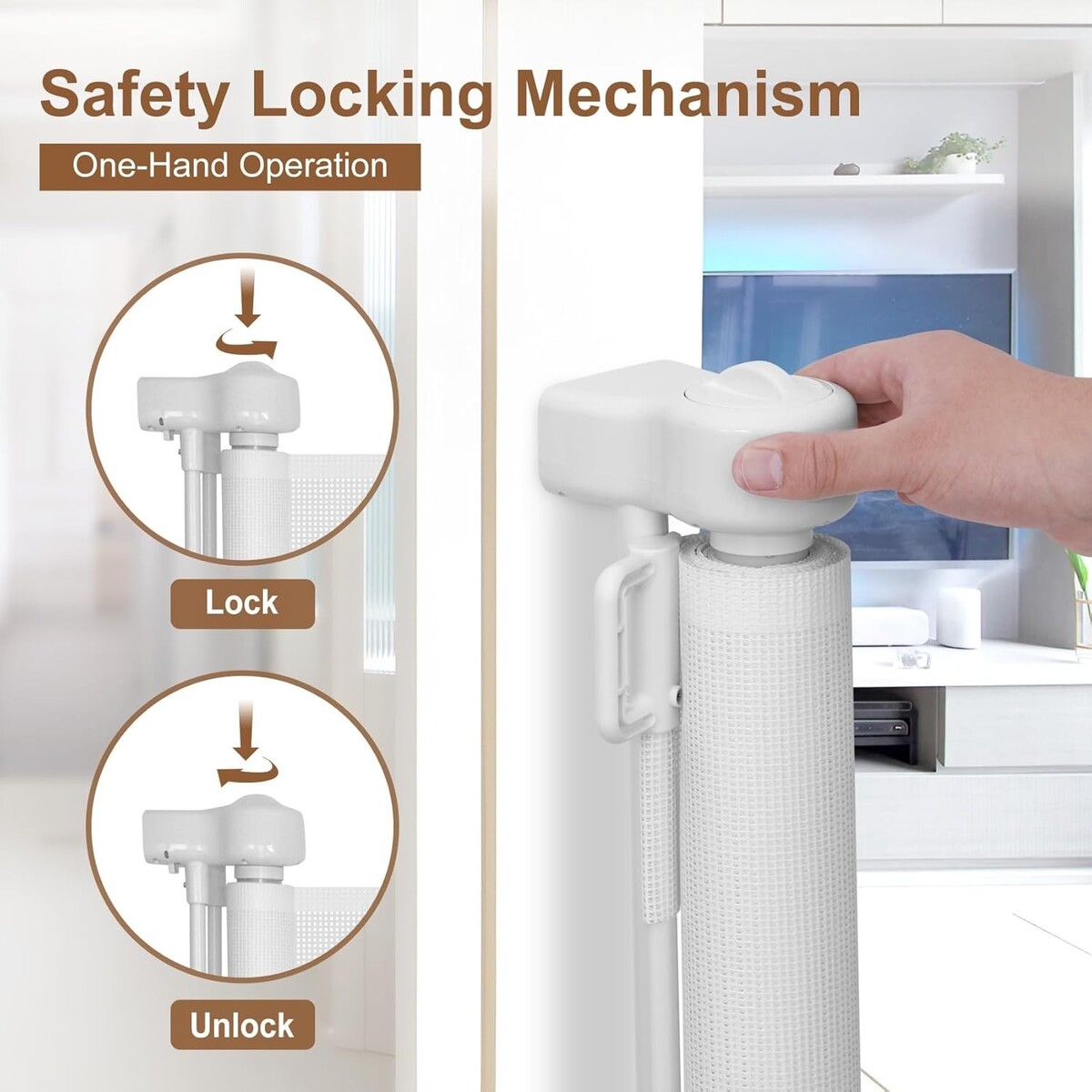 ?Safety Locking Use?Miumoon retractable gate lock requires pressing and rotating two simple steps to open and close, ensuring that adults can easily operate the gate with one hand, keeping curious little ones and pets from mischievously seeking freedom.