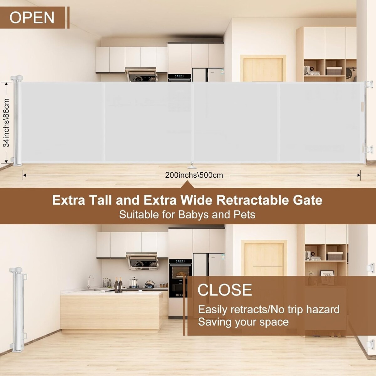 - 200 inch Retractable Baby Gates Extra Wide Reinforced Strip 45" Tall White