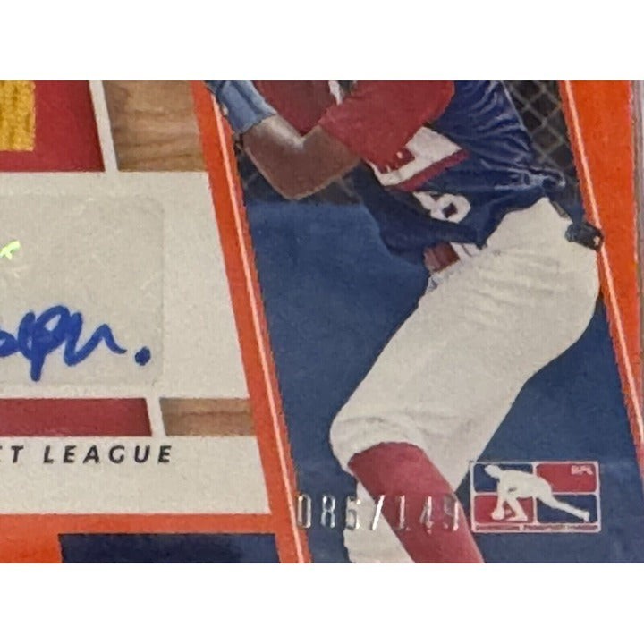 This 2022 Panini Elite Extra Edition trading card features Dawel Joseph of the Seattle Mariners. The card is autographed by Joseph and comes with an authenticity label from Panini Authentic. It is a limited edition card, with only 149 ever produced, and this particular one is numbered 86/149.