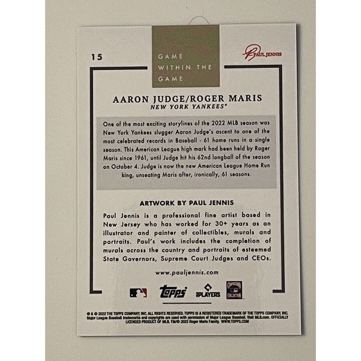 - 2022 Topps NOW Game Within Game #15 Aaron Judge/Roger Maris NY Yankees ALL RISE!