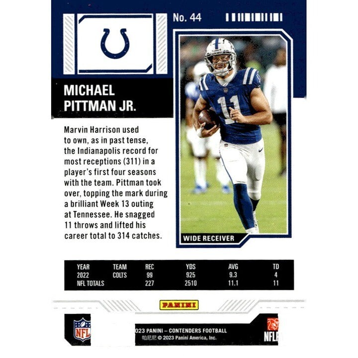 - 2023 Panini Contenders Michael Pittman Jr.* NFL Colts Game Ticket Blue Card #44*