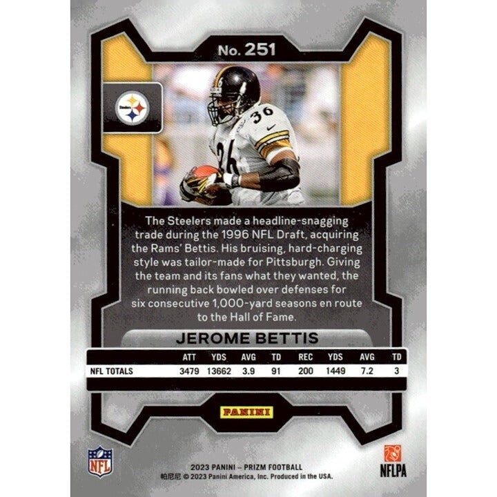 2023 Panini Prizm Jerome Bettis - NFL Pittsburgh Steelers Football Card HOF #251