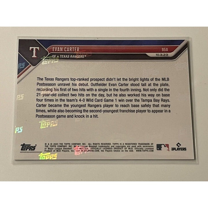 - 2023 ToppsNOW Evan Carter Wild Card Game 1 - MLB AL Texas Rangers Call Up #958 *