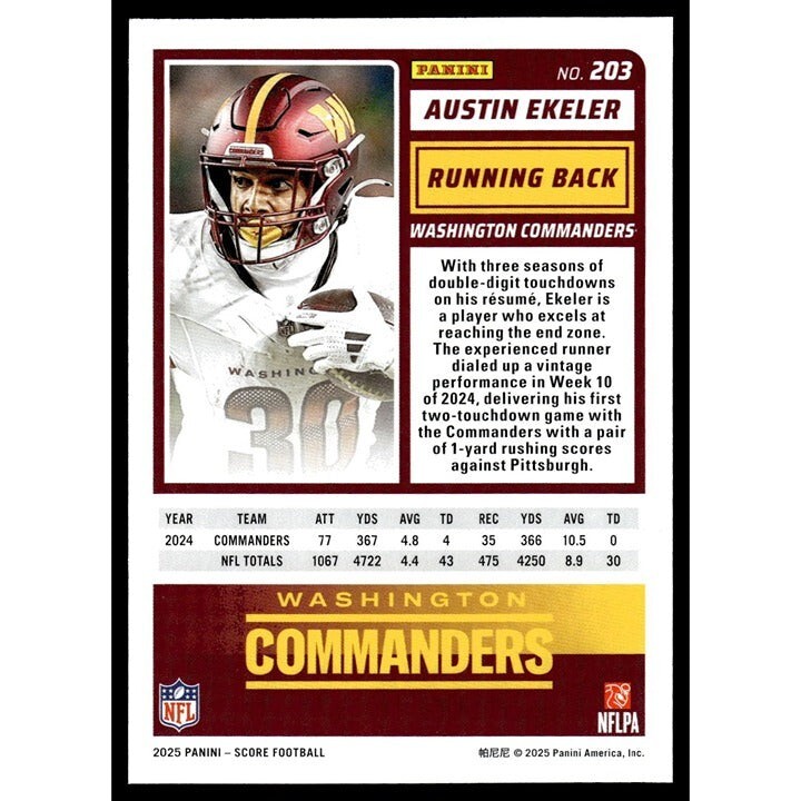 - 2025 NFL SCORE Panini Football Card - Austin Ekeler* Commanders 203 - Near Mint!