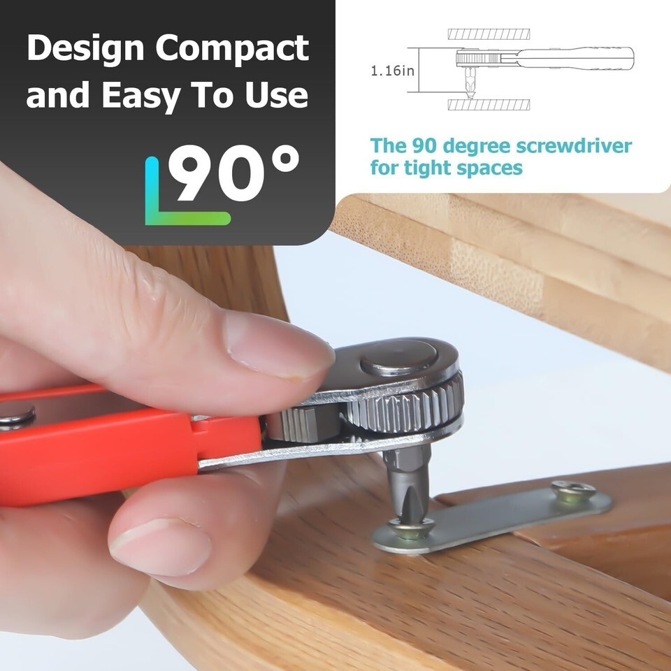 21 PCS Right Angle Screwdriver, Angled Screwdriver for Tight Spaces, 36 Tooth Mi