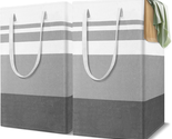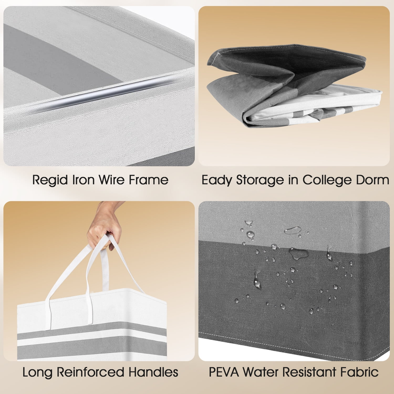 2*75L Large Capacity Freestanding Laundry Basket Hamper for Clothes Organizer with Handles Collapsible design for space saving storage in College Dorm Bedroom Laundry Room Bathroom College Family Closet Baby Room 2 Sides handles for easy carrying and preventing tearing PEVA waterproof coating inside of the basket keeps clothes dry and makes cleaning easy, with no irritating smell. Even the hamper is empty, it also can stands firmly upright.