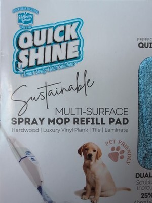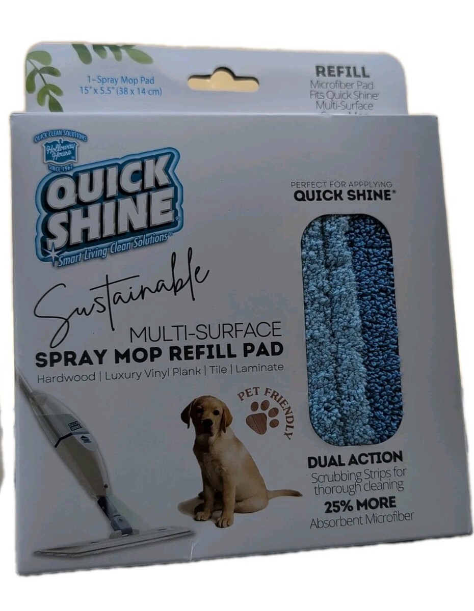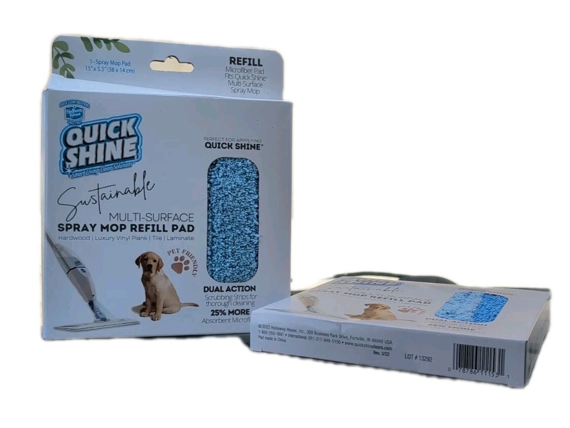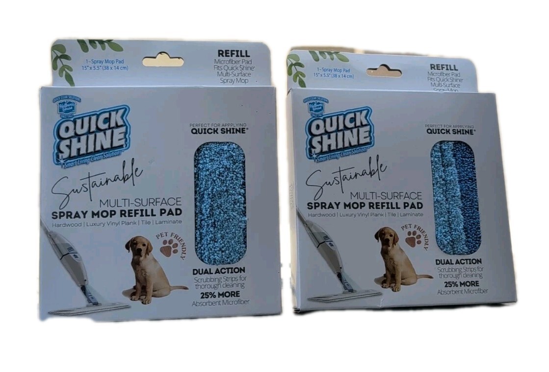 2X Quick Shine Spray Mop Refill Pads 15"x5.5" Washable Reusable Dual-Sided Floor Cleaning Packaging may show some shelf wear --- ? Description ? Product Details Keep your floors shining bright with these genuine Quick Shine Spray Mop Refill Pads! Each pad measures 15" wide x 5.5" deep and is made from high-quality microfiber that can be washed and reused again and again. Designed for dual-sided cleaning ? perfect for dry dusting or damp mopping on all sealed hard floors. ? Features: Includes 2 reusable mop pads (washable eco-friendly) Dual-sided design for maximum cleaning efficiency Safe for use on hardwood, laminate, tile, vinyl, and more Easy Velcro-style attachment for Quick Shine Spray Mops Machine washable ? saves money over disposable pads ? Dimensions: 15"W 5.5"D (each pad) ? Condition: New, unused, sealed packaging --- ? Shipping Terms Ships within 1 business day from Iowa with love ? Secure packaging for safe delivery ?? 100% Satisfaction guaranteed ? Returns accepted ? Trusted USA seller with 26 years experience ??