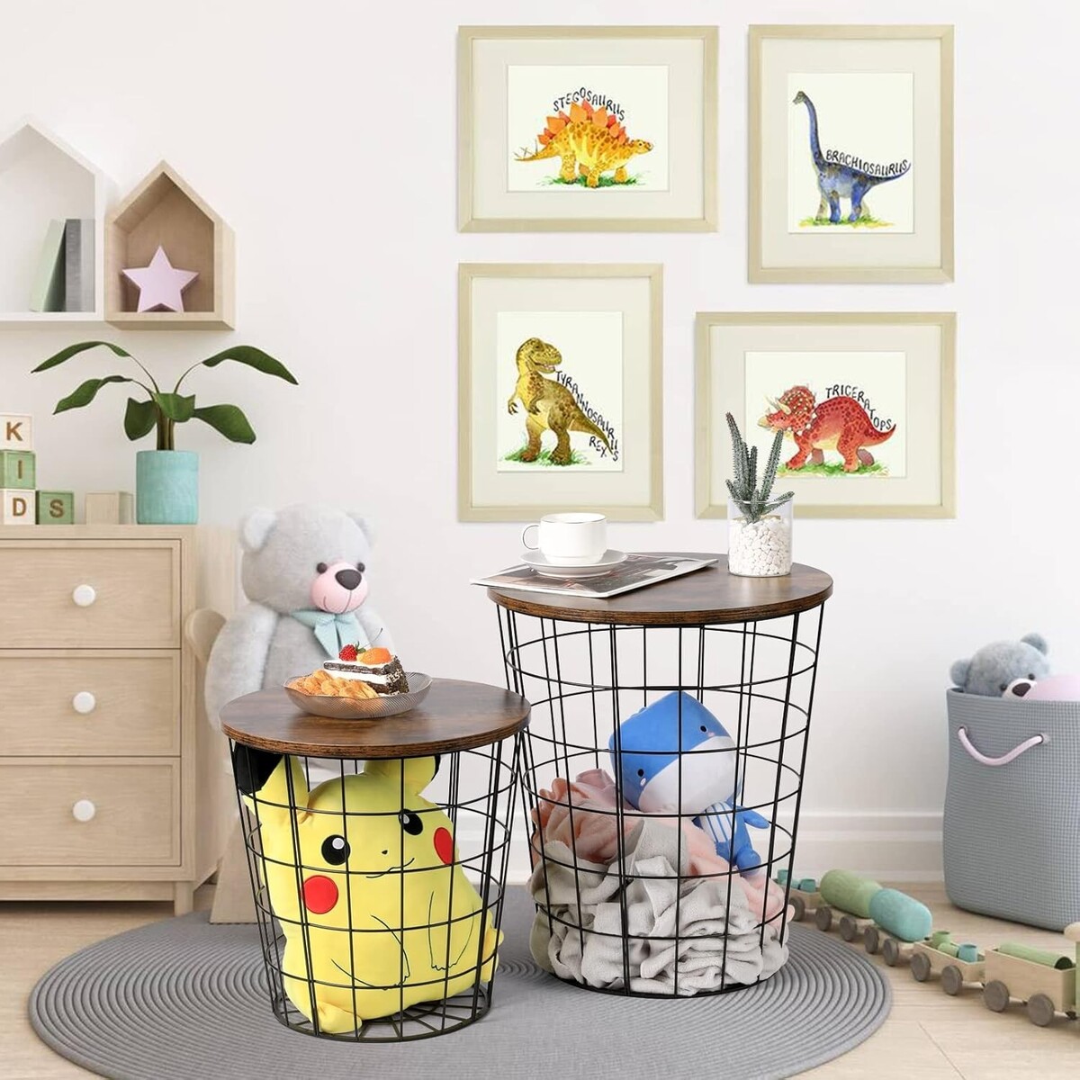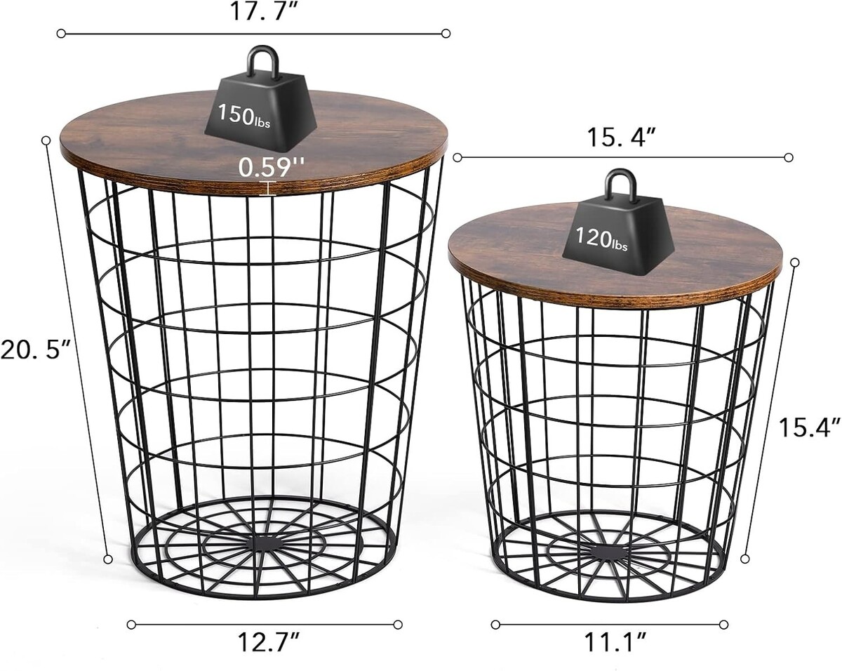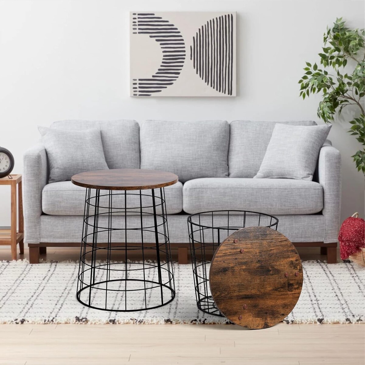 Primary image for 2pc Nesting End Tables with Storage Metal Basket Side Table for Home Living Room