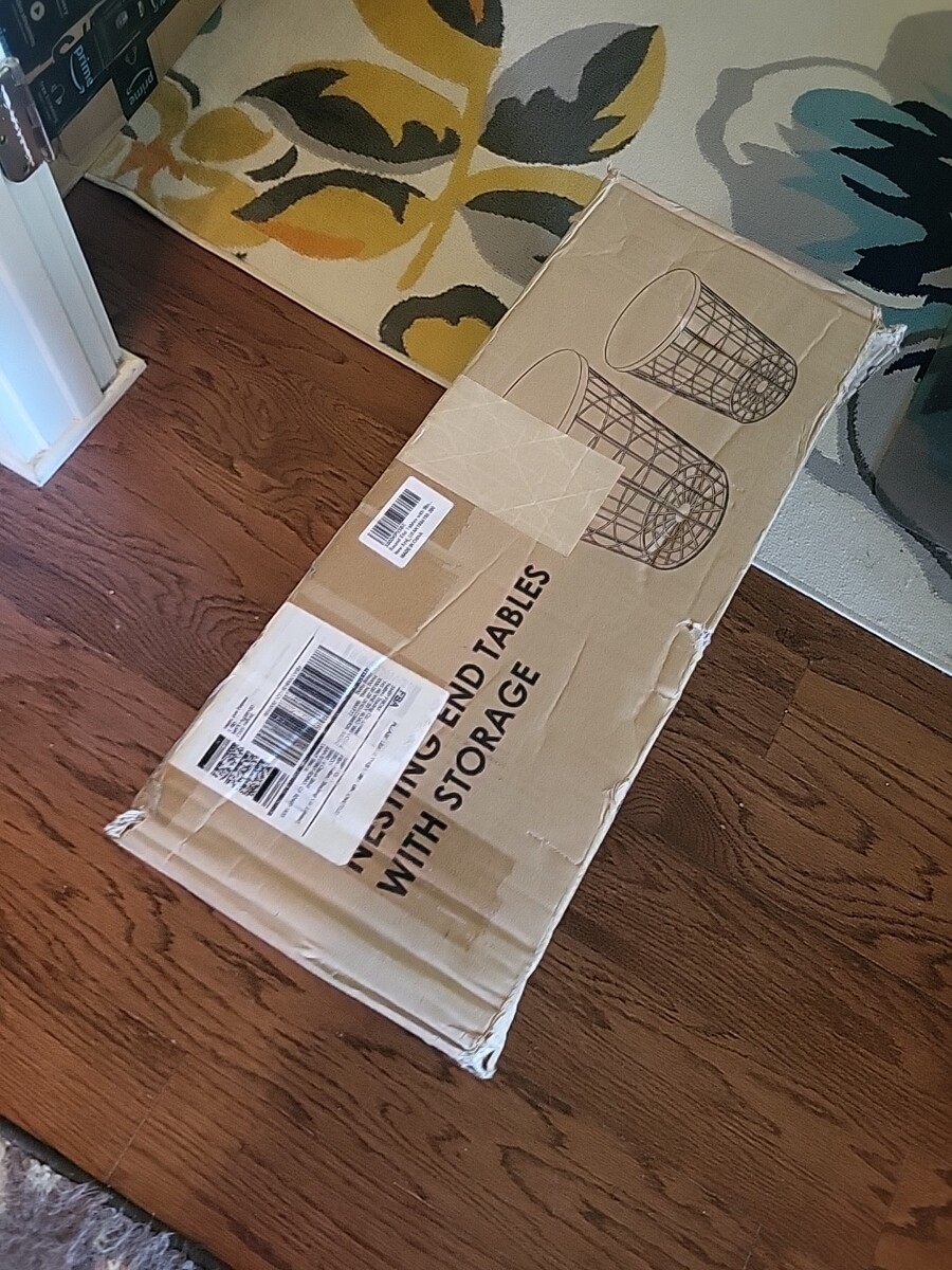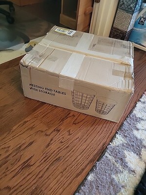 Brand New in the Box! 2pc Nesting End Tables with Storage Metal Basket Side Table for Home Living Room FEATURES: ?Love at First Sight?They are such charming nesting end tables! Clear wood grain appearance, geometric metal frame. Combine modern and industrial designs to bring more sophistication and style to your life. ??More Storage Choices?You can put the drinks, laptop, or snacks on the table top, the space underneath can store blankets, books, magazines, and more. ??Value for Money?Sturdy and durable. These round end tables are constructed of metal and high quality particle board top with wood grain veneer. Maximum weight capacity: 150lbs (large), 120lbs (small). ??Functional End Tables?Our side end tables can work for living room, bedroom, office or kid?s space and nests for space saving. You can also use them Individually in different rooms as side tables, accent tables or laundry basket. ??Easy to Assemble?You just need to use the screws to put the end table together. Material: particle board, veneer, metal. Dimensions: large= lid- 17. 7? (D) x basket- bottom base 12.7?(d) x 20. 5?(H). small= lid- 15. 4? (D) x basket- bottom base 11.1?(d) x 15.4?(H). GREAT ITEM AT A GREAT PRICE!!