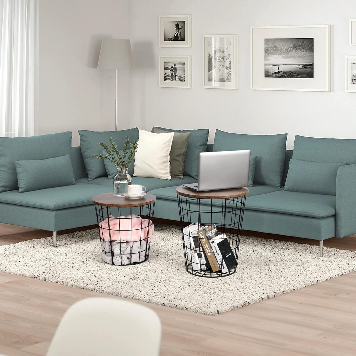 2pc Nesting End Tables with Storage Metal Basket Side Table for Home Living Room