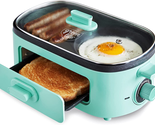 3-In-1 Breakfast Maker Station, Healthy Ceramic Nonstick Dual Griddles for Eggs Meat Sausage Bacon Pancakes and Breakfast Sandwiches, 2 Slice Toast Drawer, Easy-To-Use Timer, Turquoise