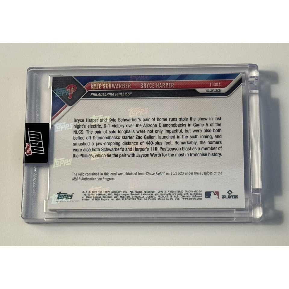 35/99 Game-used Base Relic Kyle Schwarber/Bryce Harper - 2023 Topps Now* IN HAND