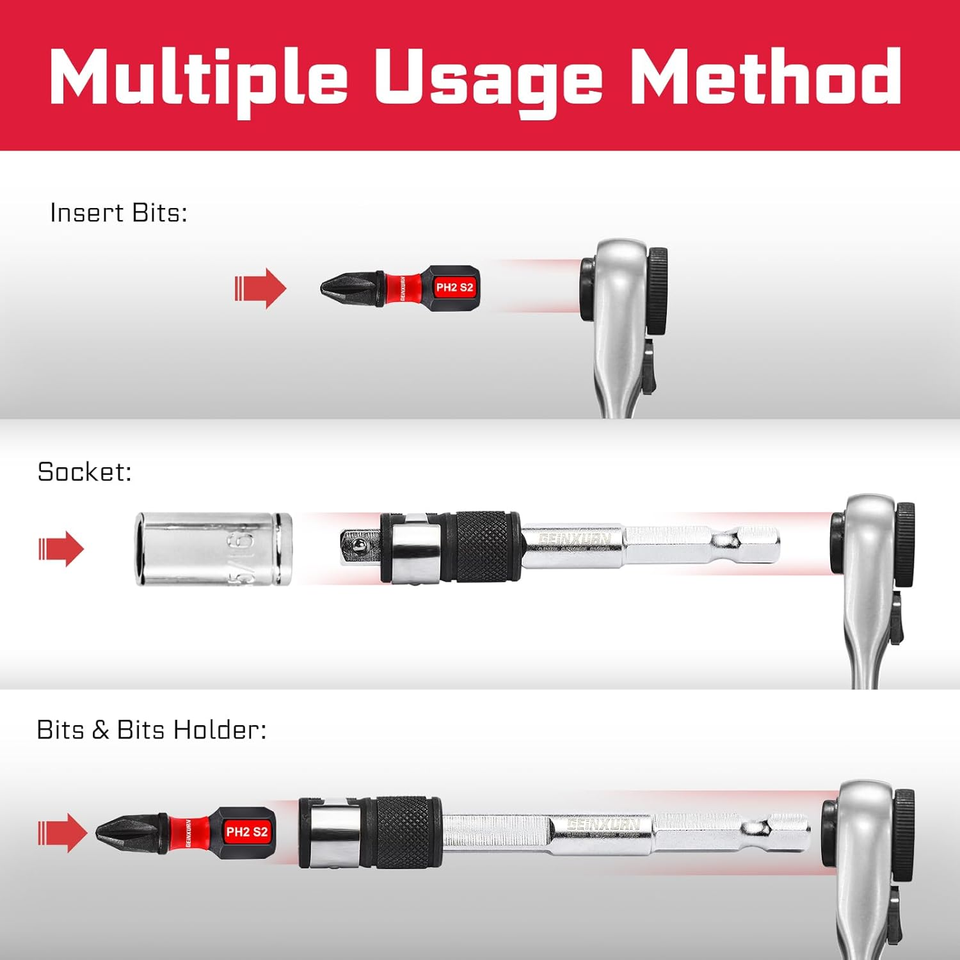 1 pc ratchet wrench, 1pc 2-in-1 magnetic bit holder, 30 pc 1-inch |