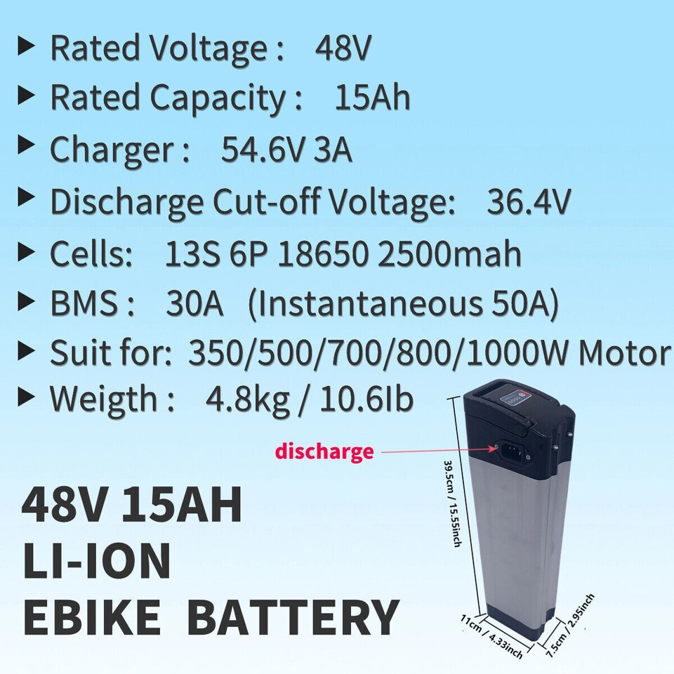 48V12Ah/15Ah EBIKE Battery Lithium Li-ion 30A BMS Electric Bicycle Charger 1000W