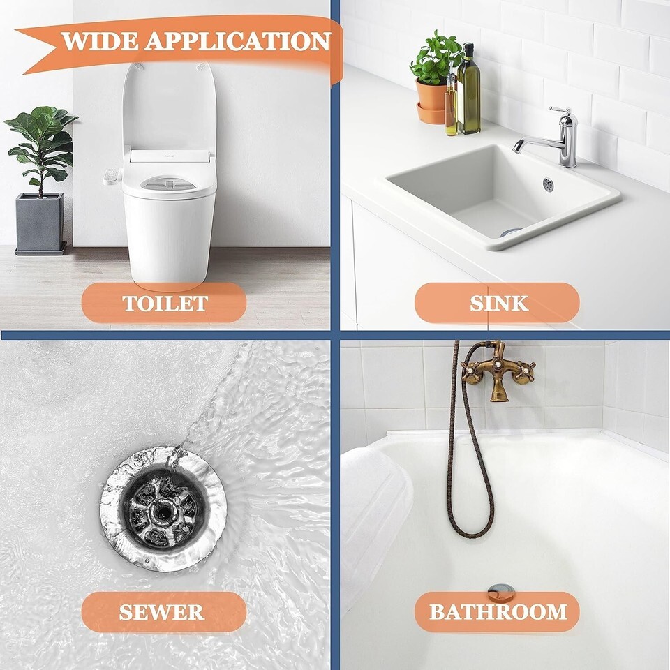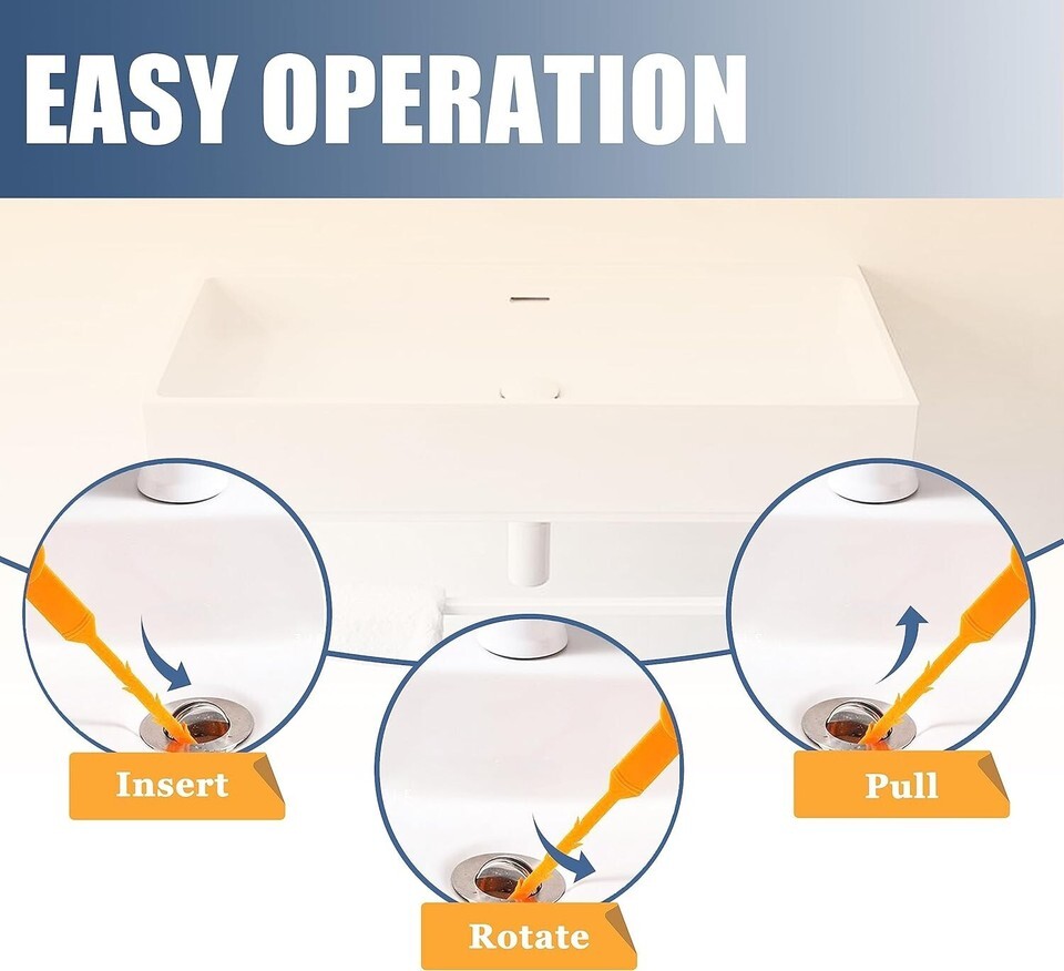 Product Details: ?VALUABLE COMBINATION?8 pack of drain cleaning snake will fulfill your need to remove hair and other blockage. ?EXCELLENT LENGTH FLEXIBLE?Drain snake is 25 inches long with tiny hooked teeth on it. The product is made by PP material which is highly flexible. Its flexibility allows it to remove deeper hair and blockage in the curved pipe. ?EASY OPERATION WIDE APPLICATION?The operation is simple and much safer. Just hold the handle, insert it, spin, then pull it out. Repeat the above steps until the drain pipe is clear. Suitable for bathroom, kitchen sink, toilets, washbasin, bathtubs, sewer etc. ?HIGH QUALITY REUSABLE?The product is made of durable and environmentally-friendly material which is not easy to snap or break, can be used for a long time. ?CAN'T MISS PRODUCT?More environmentally-friendly than chemicals and more cost-effective than plumber service, definitely value for money.