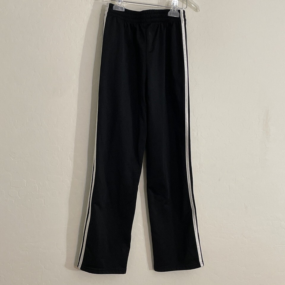 Adidas Youth M (10-12) Black White Three Striped Track Pants Joggers Polyester