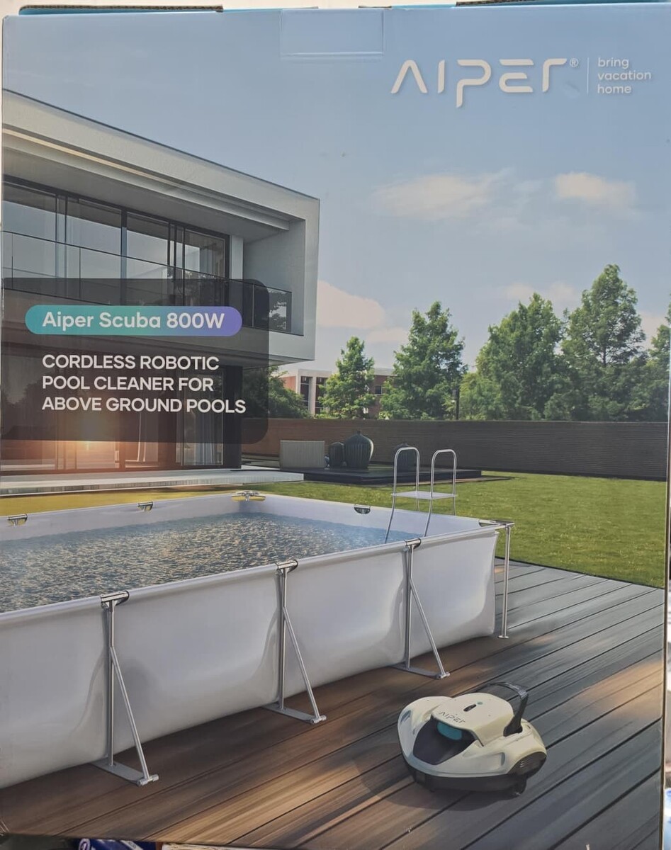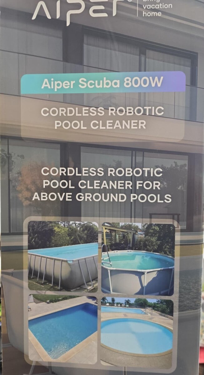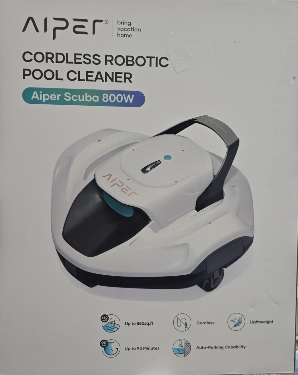 Goodbye, pool boy! Cleaning your pool has never been simpler. The 2025 newly upgraded Aiper Scuba 800W Robotic Automatic Pool Cleaner is the perfect solution for your flat-floored above ground pools up to 860sq.ft, 30ft in length. Completely cordless, this hassle-free automatic robotic pool cleaner features a drive motor and a pump motor, with a 90-minute battery life, and the robotic pool vacuum is lightweight and is activated with just one click. Once the battery of the automatic robotic pool cleaner is low, it will automatically stop near your pool's wall for easy retrieval with the included retrieval hook.