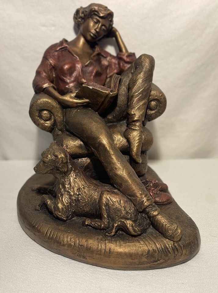 This beautiful figurine depicts a woman with a book, and is crafted from plaster or clay. The intricate details and stunning design make it a unique and eye-catching piece of art. Measuring 10X11 inches, it is a medium-sized figurine that will make a great addition to any collection. The artist behind this piece is unknown, adding to its mystique and allure. It is an original, licensed reproduction, and is being sold by a dealer or reseller. The figurine is multi-colored, and its theme is art. It is an original piece, and its time period of production is unknown.