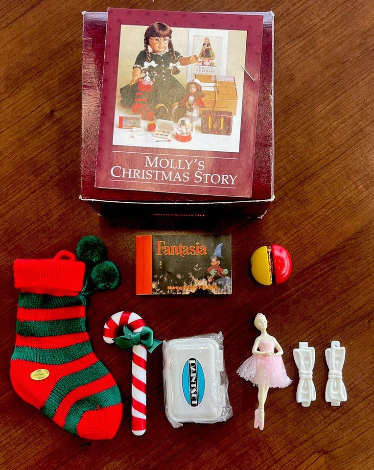 New American Girl Doll Molly RETIRED RARE PC Christmas Stocking II, Original Box New Never Used. Was The First Time Taking Everything Out Of The Stocking To Take Pictures