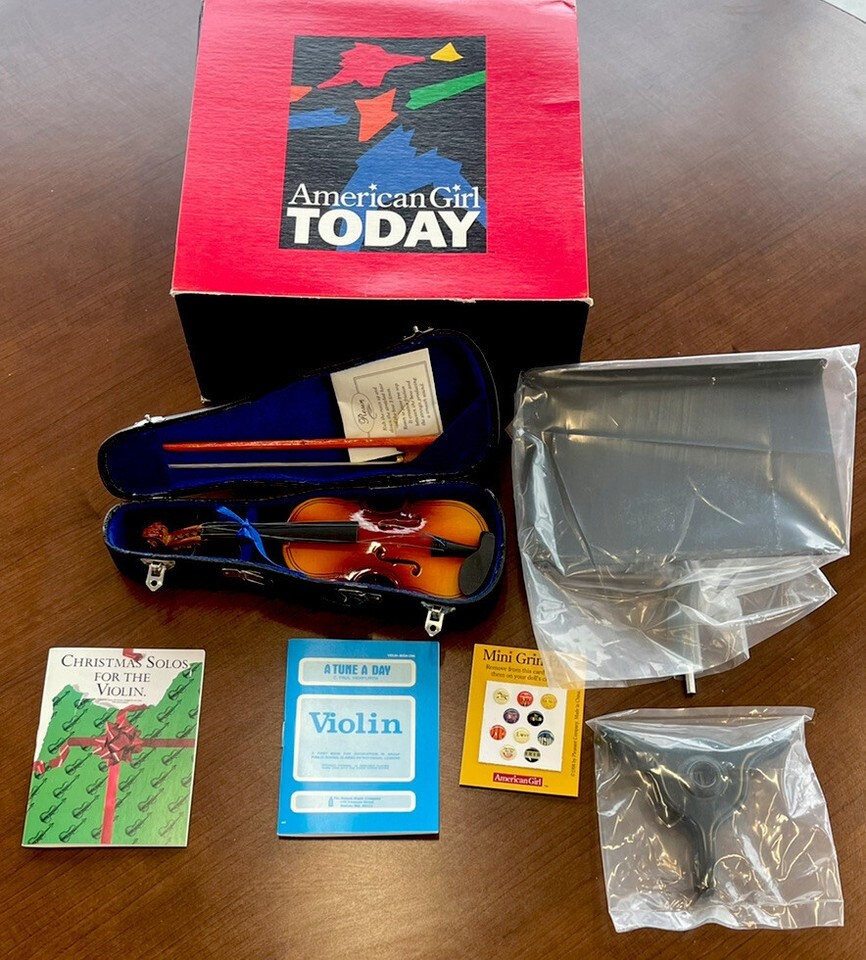 American Girl Doll Violin Stand Set RETIRED W/Bow Rosin w/Books Leather Case.
