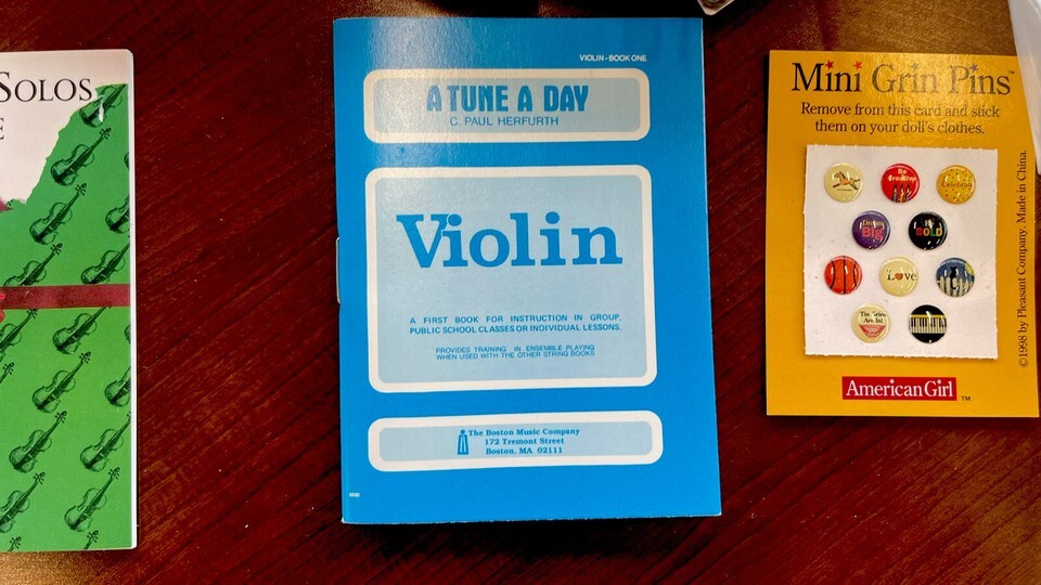 Primary image for American Girl Doll Violin Stand Set RETIRED W/Bow & Rosin w/Books & Leather Case