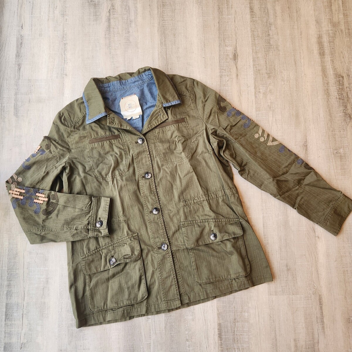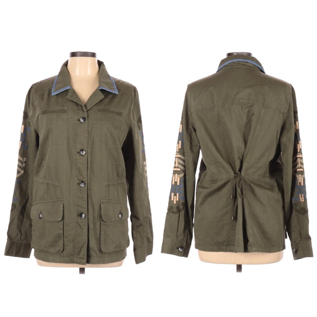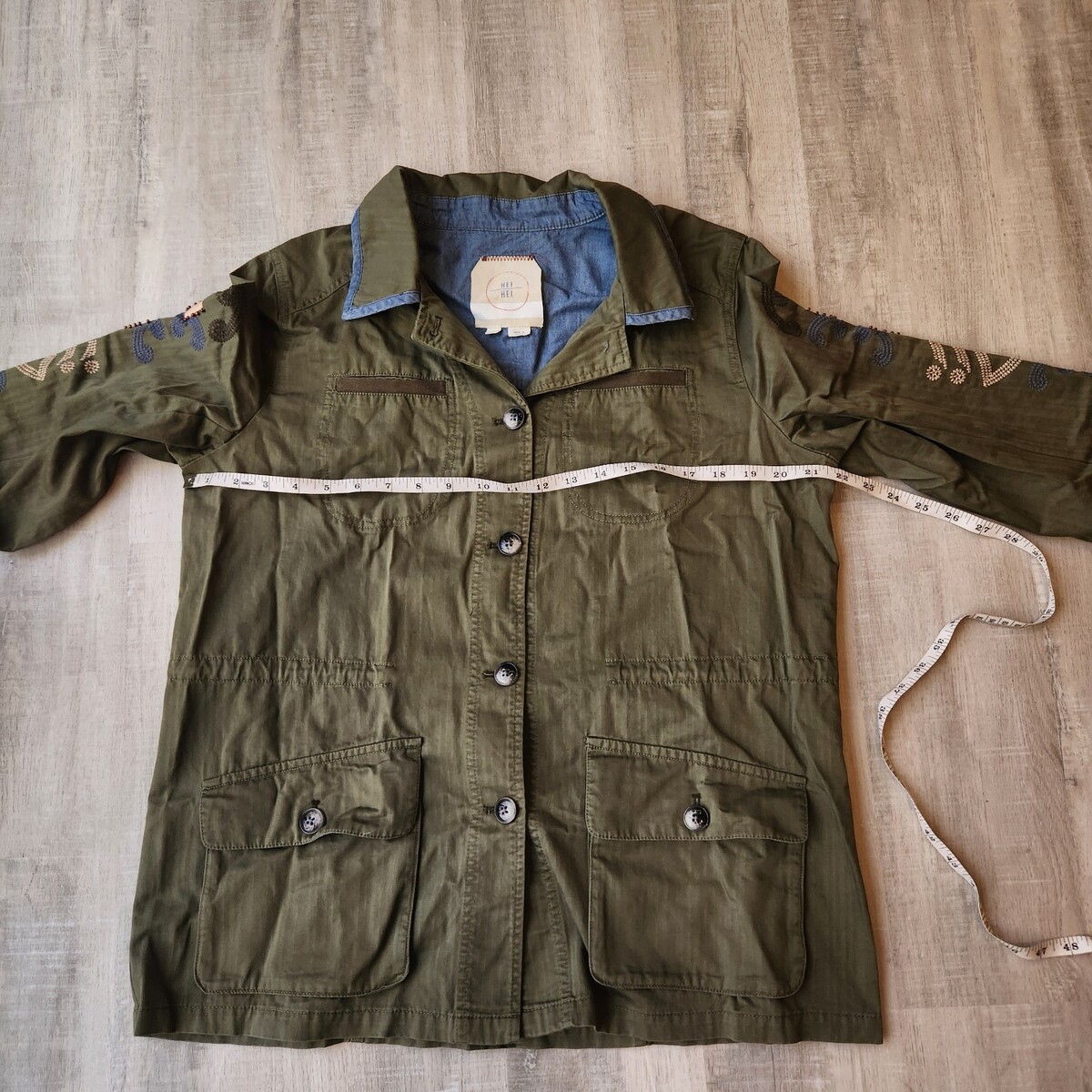 - Anthropologie HEI HEI Adventurer Green Embroidered Shirt Jacket Women Large