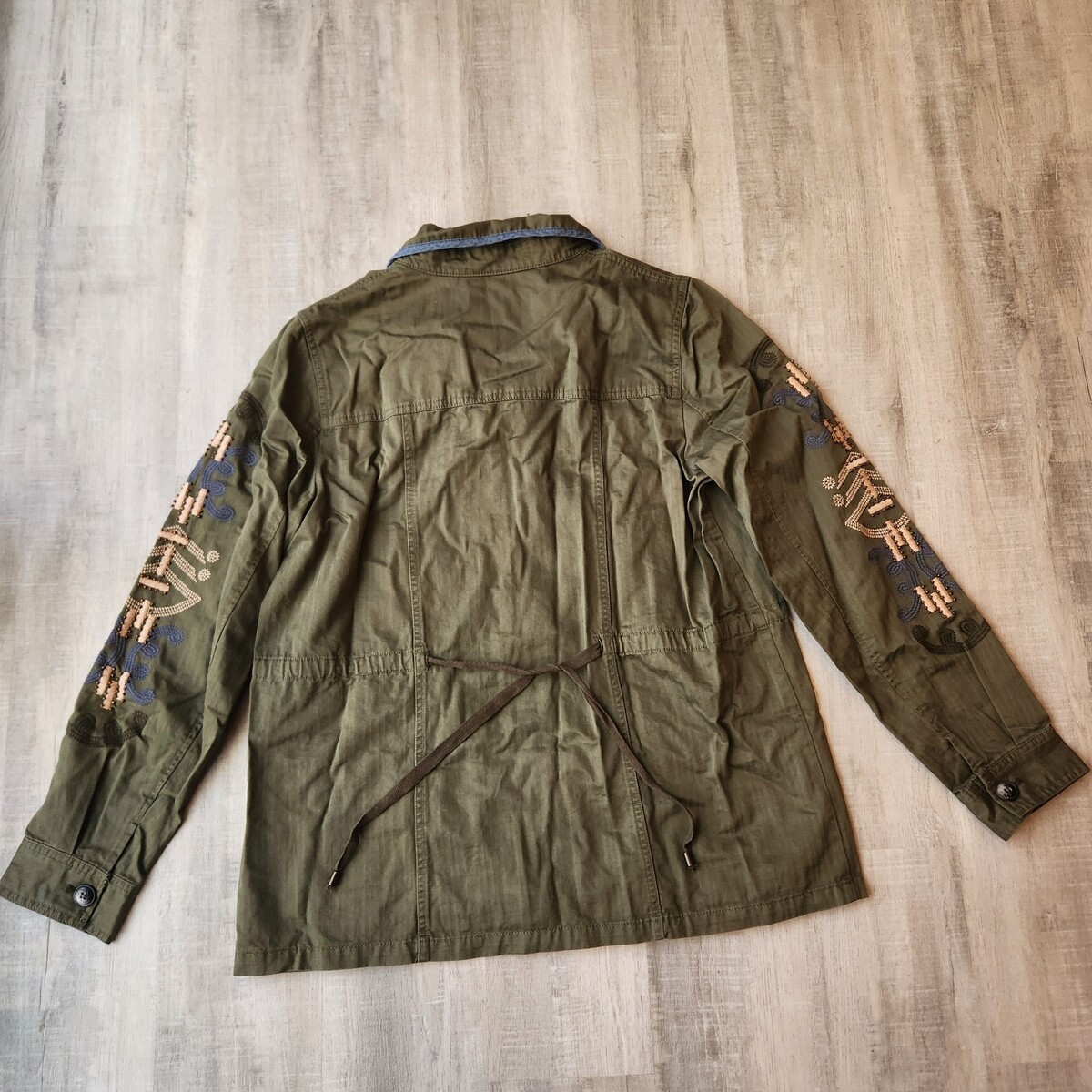 Anthropologie HEI HEI Adventurer Green Embroidered Shirt Jacket Women Large