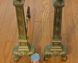 - Antique Ornate Heavy Brass Column Greek Federal Style Andirons 26 Inches Tall