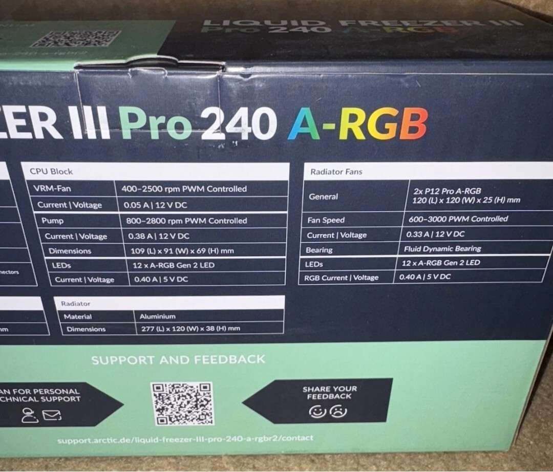 - Arctic Liquid Freezer III Pro 240 A-RGB AIO CPU Cooler (Black) Shipping
