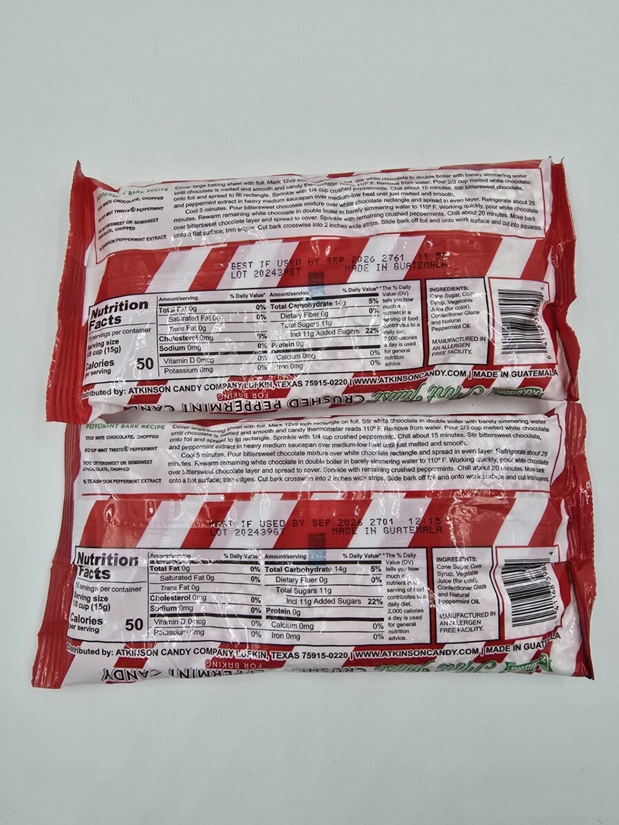 Atkinson's Mint Twists Crushed Peppermint Candy 8 Oz Each Lot of 2 = 16 Oz Total Exp 09/26