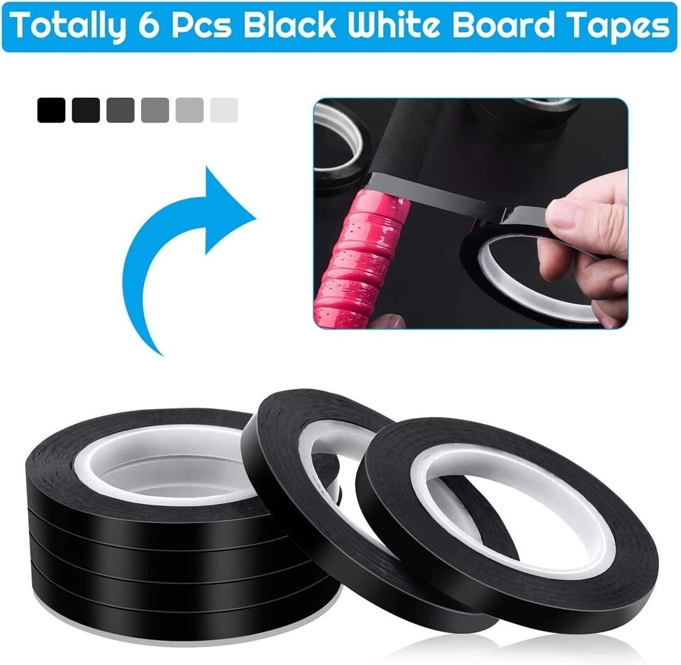 About this item Great Value White Board Tape - You will get 6 rolls black pinstripe vinyl tape, 108 feet per roll, totally 648 feet, enough for your longtime using Higher Quality ? The pinstriping tape is made of PET material with strong adhesive, which can stick to the whiteboard perfectly Work Well ?This whiteboard thin tape is without paper backing, easy to apply and remove and leave no residue on the surface Suitable for Many Occasions ? The graphic chart tape is perfect for paper works, line charts, guide lines, blackboard-writings, creating lines on your scrapbooks, journals etc. Product Size ? The grid tape measures 6 mm/ 0.25 inch in width, 33 m/ 108 feet long each roll, convenient and enough for you daily use