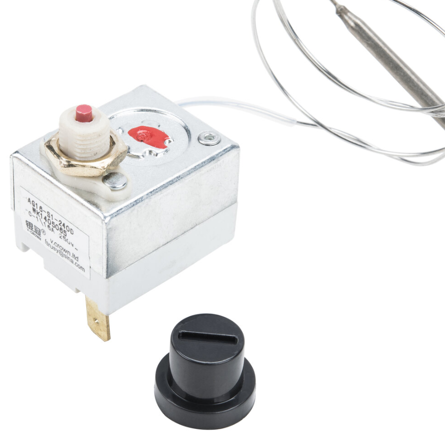 The Avantco AG16-S1-240D (WK1405065) Temperature Limiter is an essential OEM-style safety component designed for Avantco countertop fryers. Rated for 250V and 16A, this limiter protects the fryer by cutting power if the internal temperature rises beyond safe operating limits. Replacing a faulty limiter restores proper safety functionality, prevents overheating, and ensures reliable fryer performance in busy commercial environments.