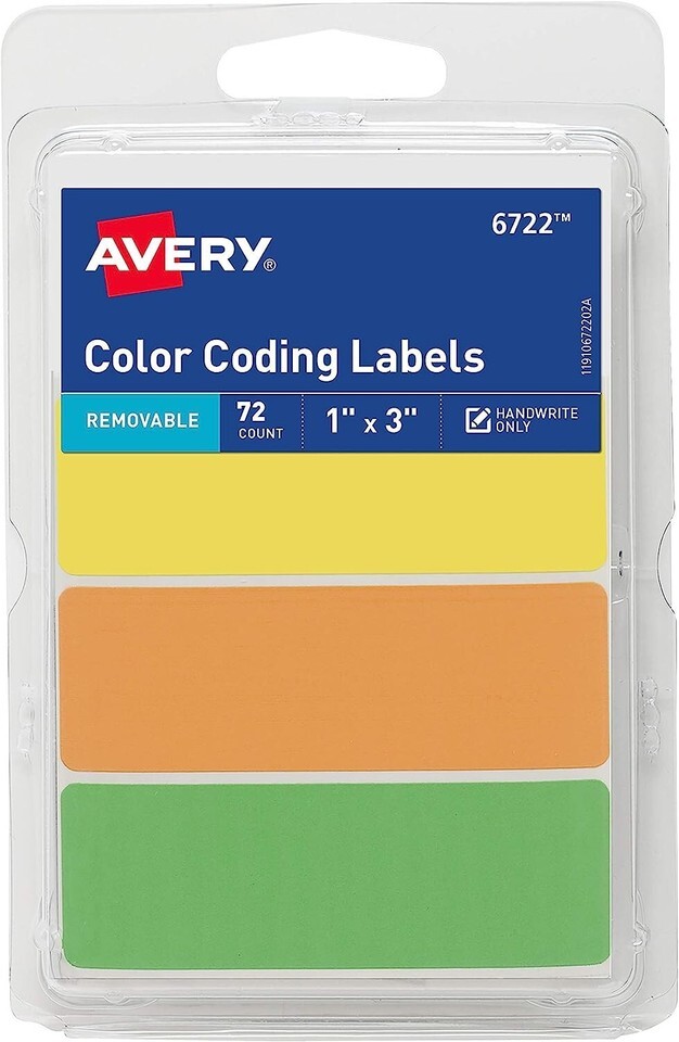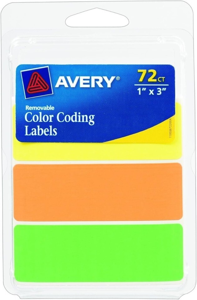 Item includes 72 1" x 3" blank label stickers in neon green, orange and yellow, perfect for color-coding, bin labels, kids labels, moving labels and more