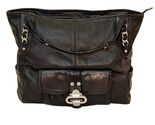 Classic and versatile ? B. Makowsky black genuine leather slouchy tote bag with silver-tone chain hardware and signature detailing. Spacious, soft leather body with plenty of organization inside and out, lined in leopard print fabric for a bold touch. A durable, everyday carryall with the right amount of edge.