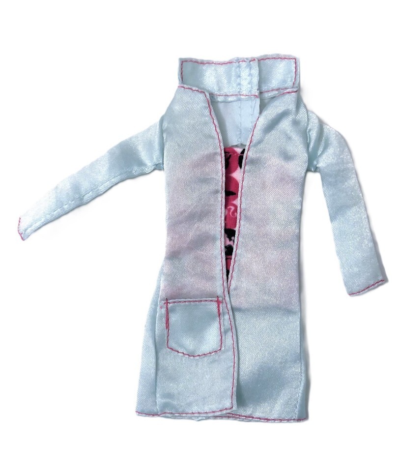 Barbie 2009 I Can Be A Kitty Care Vet Outfit Coat With Attached Top. The coat is in good, clean, pre-owned condition. I do have more Barbie items and combined shipping is added to cart when you purchase multiple items at my shop.