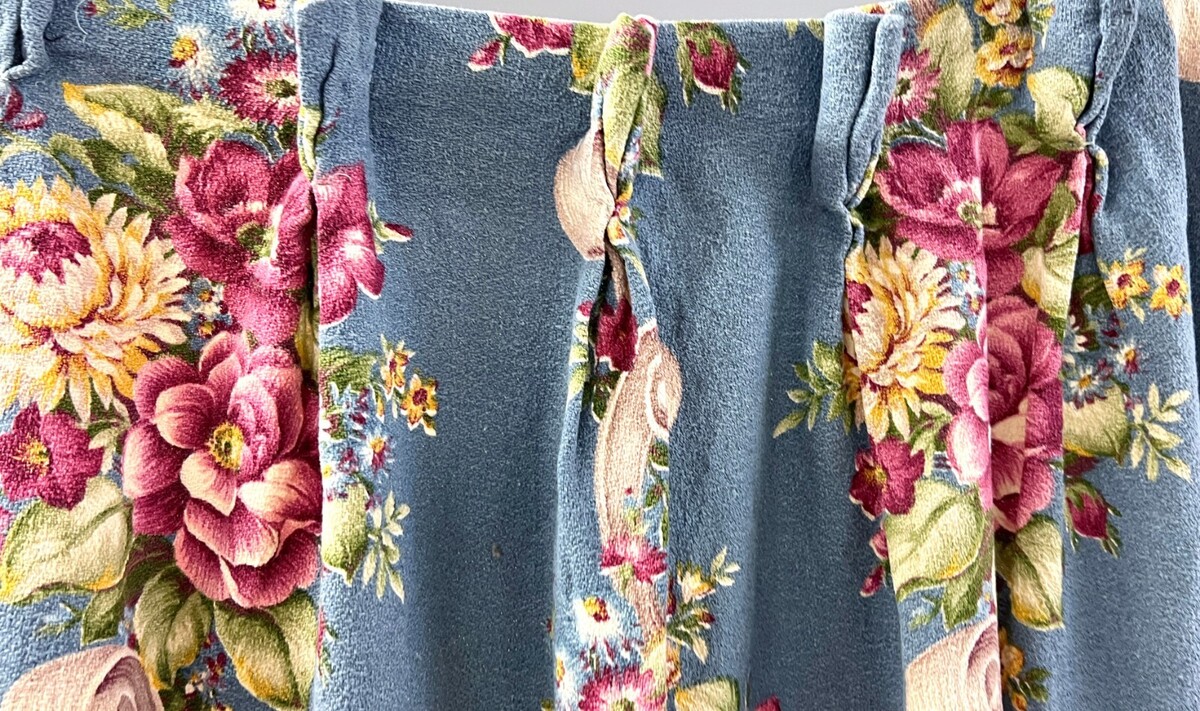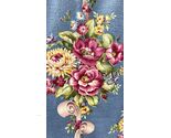 Barkcloth Cottage ROSES on Blue Barkcloth 1940s Era Vintage Fabric-1 Panel