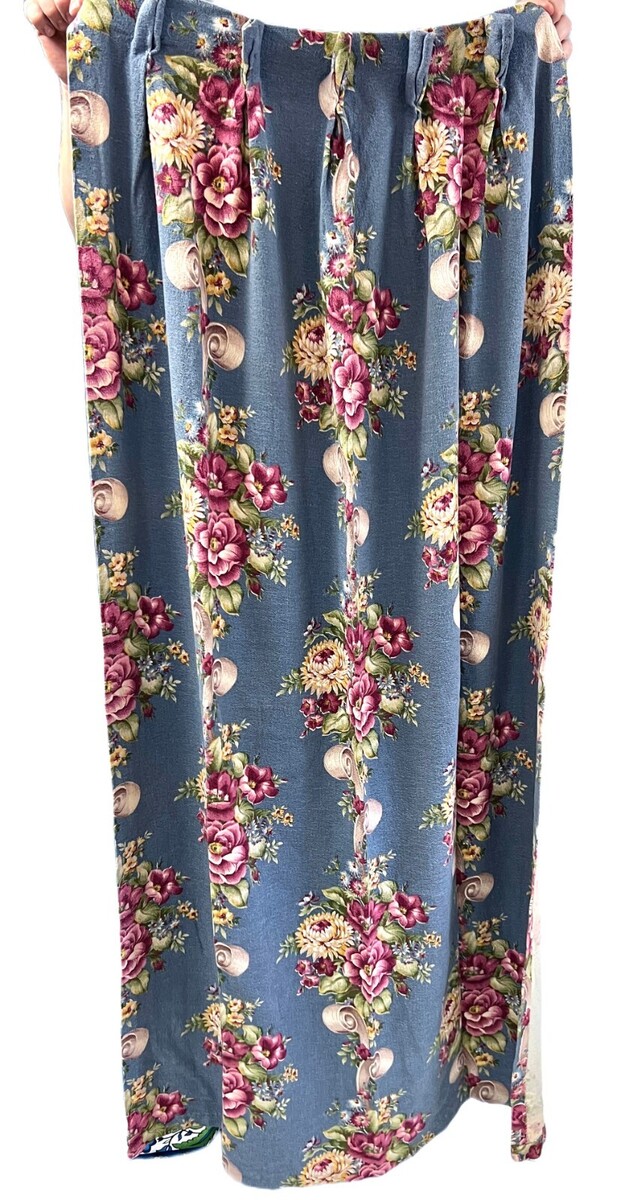 - Barkcloth Cottage ROSES on Blue Barkcloth 1940s Era Vintage Fabric-1 Panel