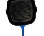- Blue Enameled Cast Iron Square Grill Pan 10.5” Ribbed Skillet Griddle Heavy Duty