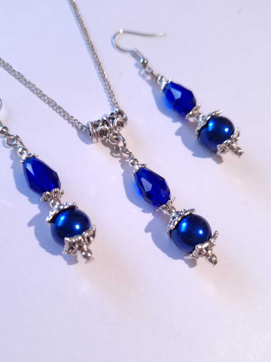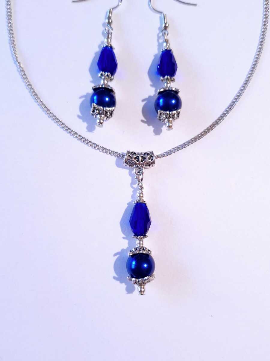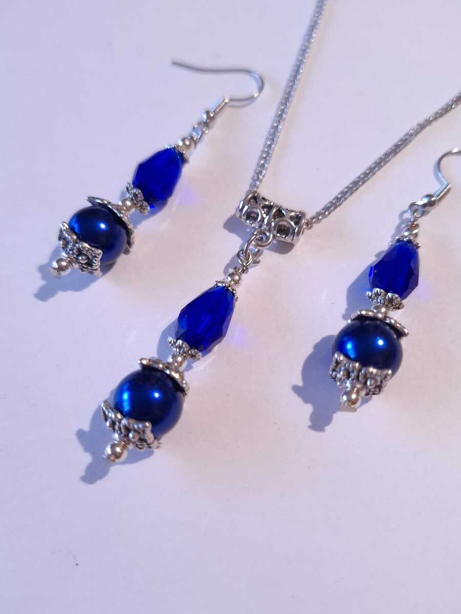- Blue pearl crystal silver jewelry set Royal blue pearl and crystal silver tone j