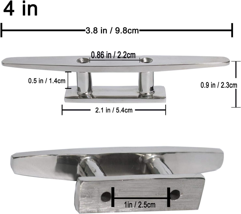 - Boat Cleat Open Base 316 Stainless Steel 4 Inch, 2 pcs. Dock Mooring with Screw