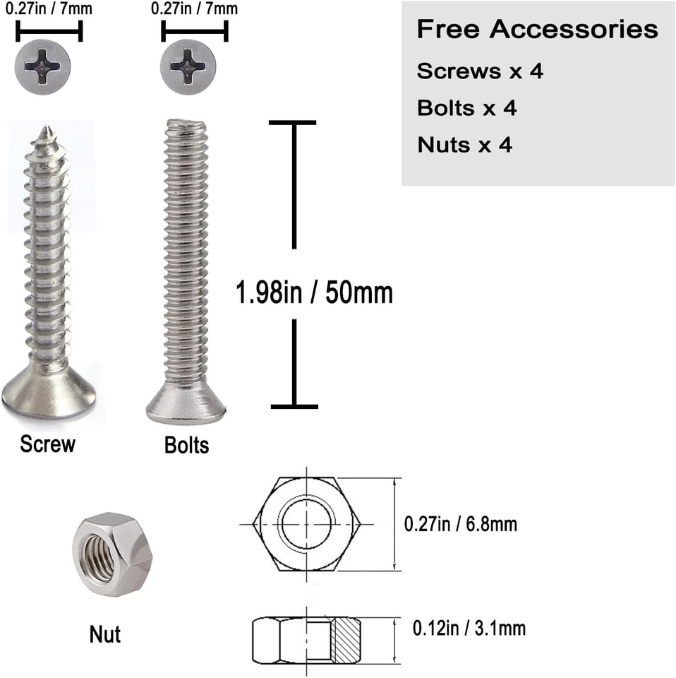 Size: 4" 316 stainless steel screws and nuts) 2 Pcs.